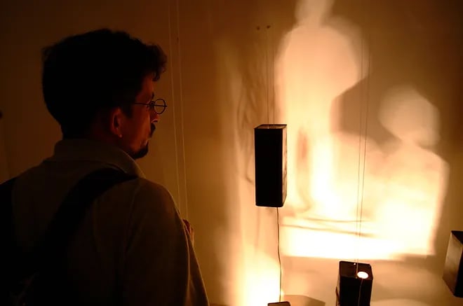 I carried out this project using a number of disposed metal boxes by reforming these boxes according to my subject, I made cuts on one of the sides shaping a human, I added lights inside to reflect the shadow of the shape over the wall.