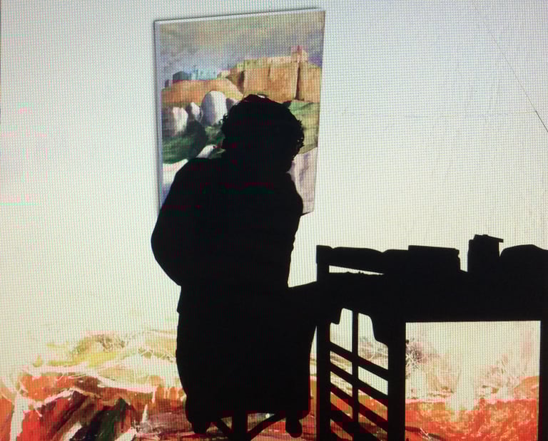 In 1997, in company of my classmates at the Faculty of Fine Arts at Al-Najah University, I visited the areas of Till and Burin. From that beautiful valley, each one of us painted what he saw in the area. On that day, I painted the village of Iraq Burin, a small village which lies on top of a high rocky cliff. Houses seemed to be part of that cliff and part of the rocks.