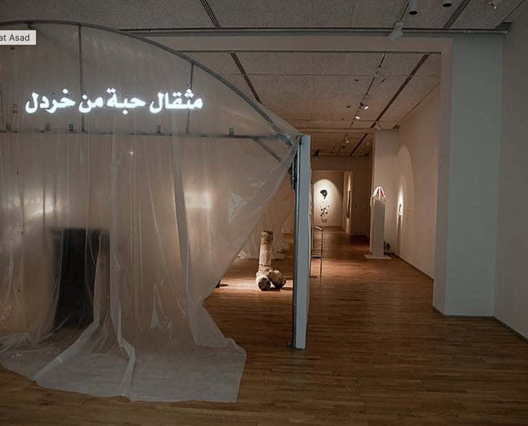 Installation, 150 x 50 X 4 cm، Fibreglass and lighting, Weed Control Exhibition, A.M. Qattan Foundation. Ramallah.