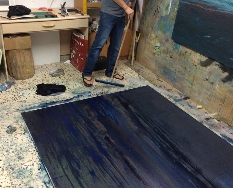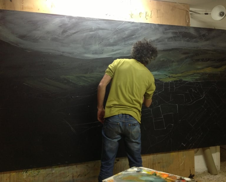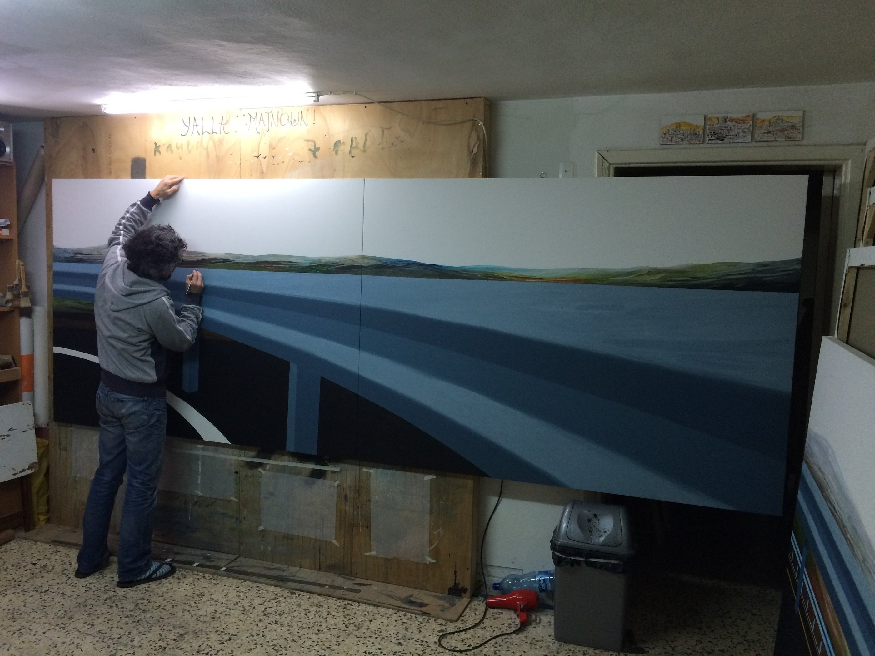 After over a year of research and experimentation, ever since the Marj Ibn Amer exhibition, I was struck by how the natural landscape seemed in juxtaposition to its urban and civil surroundings. While trekking across the entire homeland, the scene of the landscape nestled itself deep within my mind, especially when an arbitrary change takes away nature’s purity and primitiveness. How the natural landscape looked - its unified relationship, both in color and form, with its geographical paths and its civil-urban roads developed very clearly: whether contradictory, complementary, or incongruous. I saw the extent of man-made acts and interventions - in all its forms. The changes that occur as a result, and how nature becomes absent.