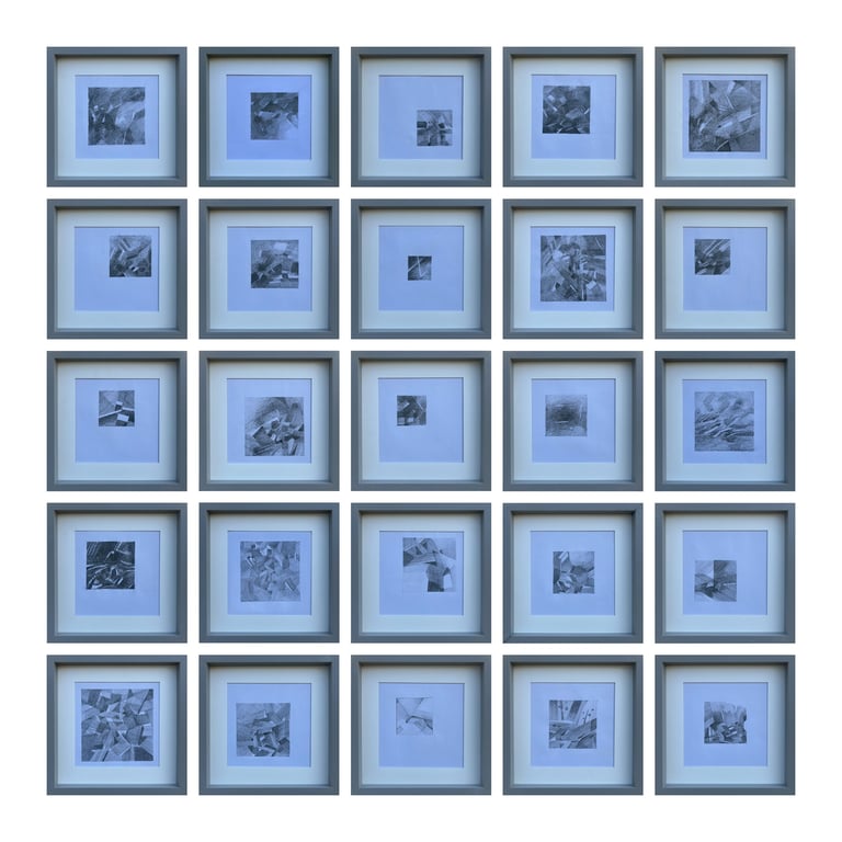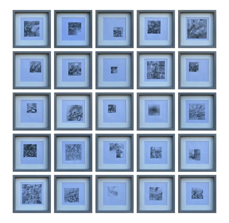 Residential Block #5, Pencil on Paper, 19X19 cm each, 25 peces, 2024